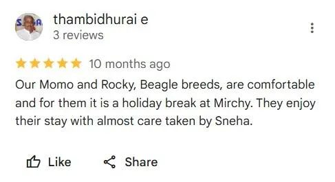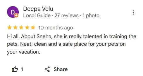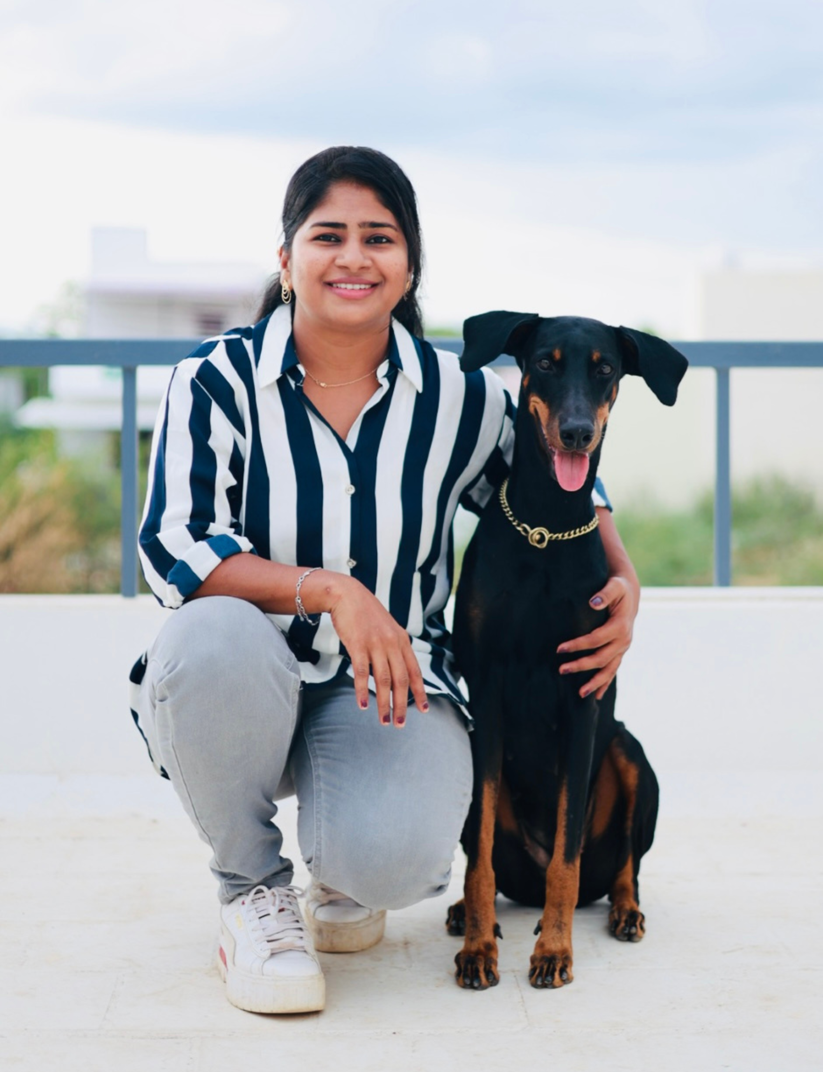 Sneka’s journey began not as a trainer, but as a passionate pet parent. Her mission started with her own dog, Mirchi, whom she wanted to understand, train, and give a better life. Through consistent training and love, she discovered Mirchi’s true potential.